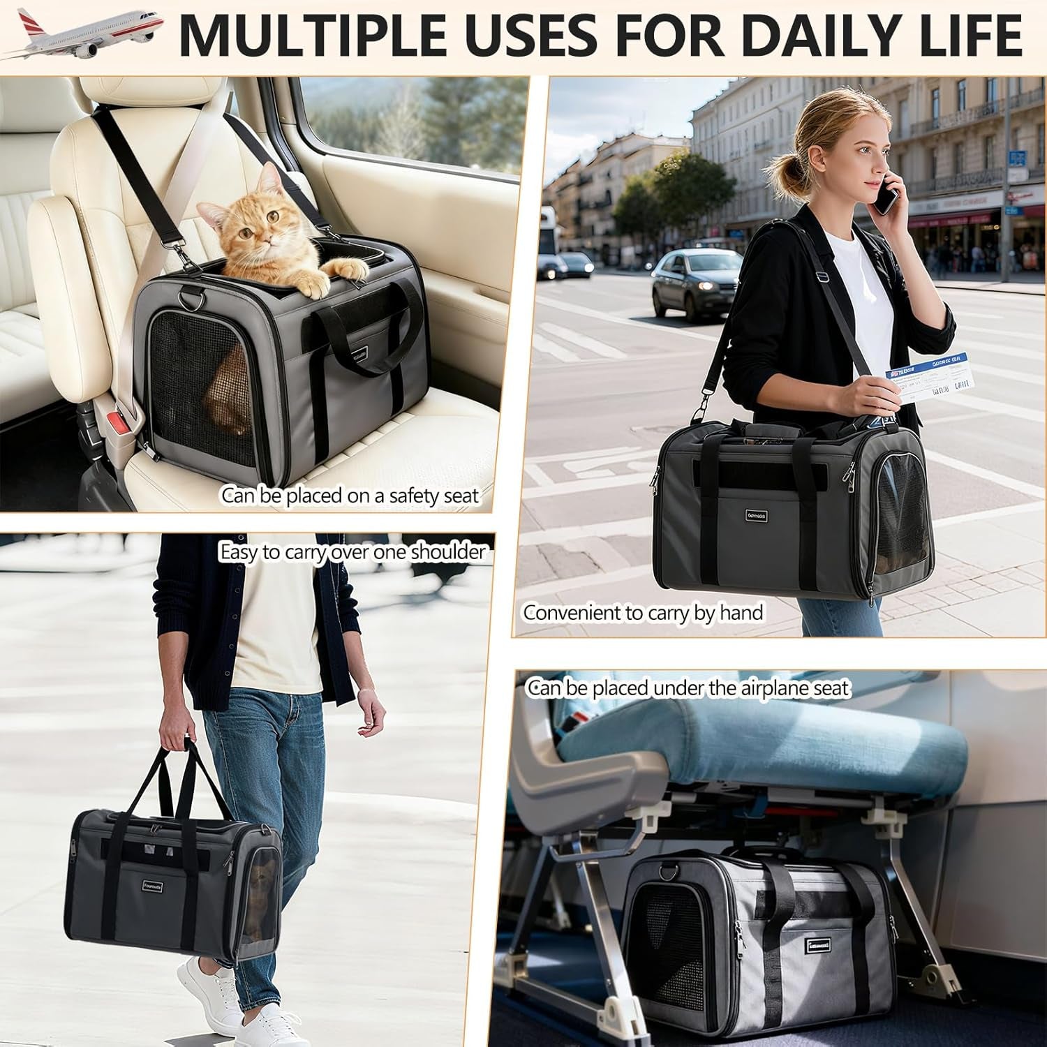 Whether you’re searching for an airline-approved cat carrier, a soft dog travel carrier, or a portable pet carrier for safe travel, this bag is built to meet the needs of pets and owners alike. A reliable choice for anyone who values comfort, security, and convenience in a premium pet travel carrier.