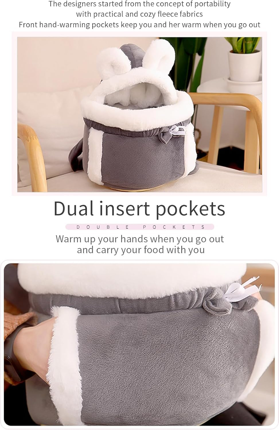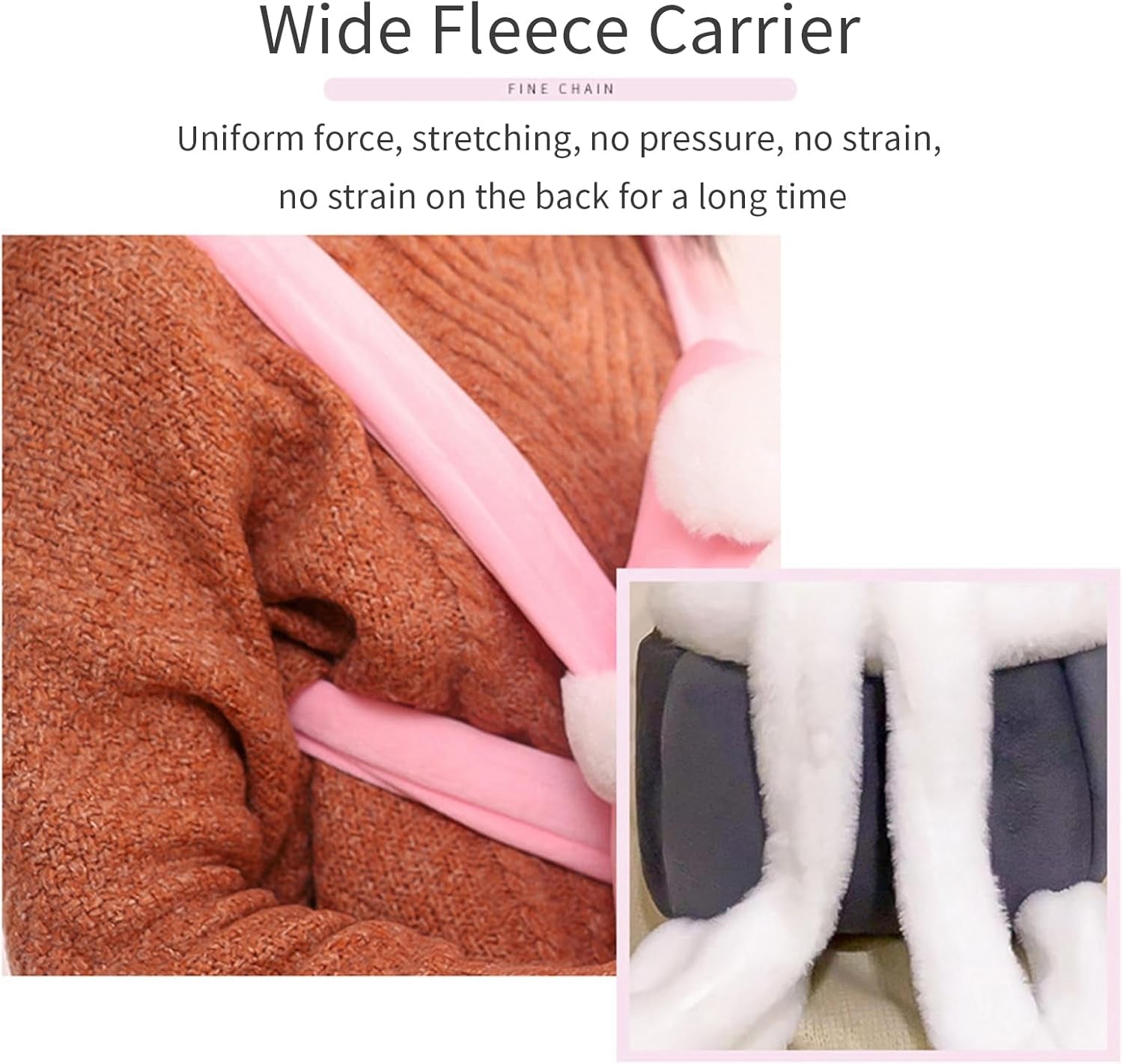 - 💗【Comfortable Pet Carrier】Wide fleece carrier. It is an even force on the shoulder, stretching and decompression, long time back hanging without strain. With innovative dual pocket design, not only can you carry essentials when you need them, but also can act as a hand warmer outdoors. Topped with a hood design, it can shield our beloved pets from the summer sunshine and cold winds in winter. This carrier also offers superior breathability to keep your pet safe comfortable in the great outdoor.